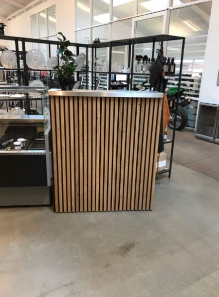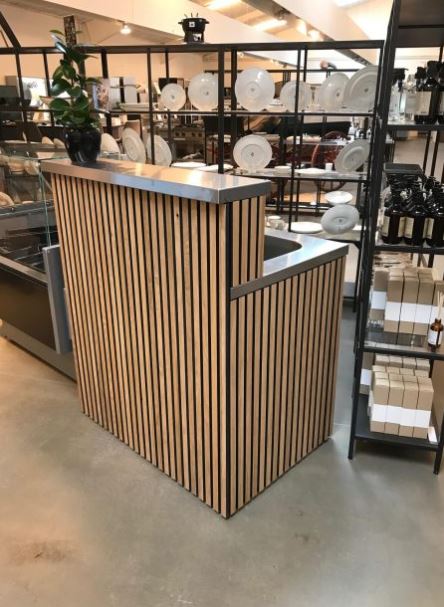 Rigtig flot disk beklædt med akupaneler. Disken kan fås med eller uden arbejdsbordplade så du kan få præcis den løsning du skal bruge. Der kan også tilkøbes vask, vulstkant og træindlæg.